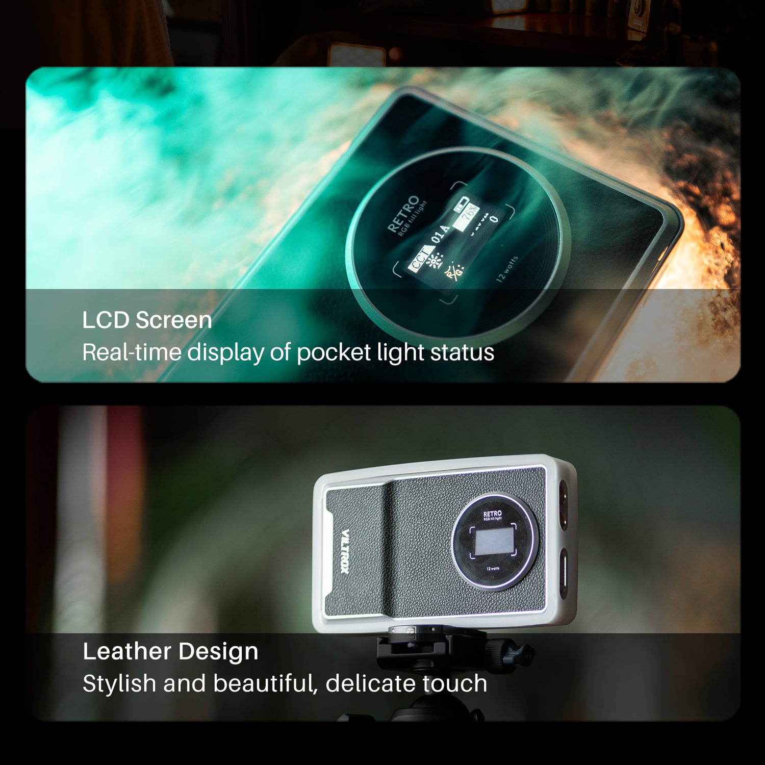 Compact and lightweight Retro series pocket light easily fits in a pocket for travel. Ideal fill-in light for live broadcast, selfies, and videos.